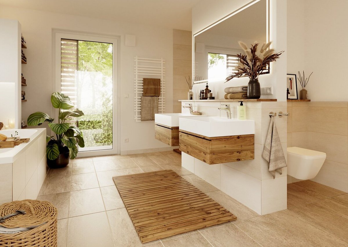 ab Preis1 €Abbildungen enthalten Sonderwünsche die nicht Vertragsbestandteil sind, regionale Preis- und Ausstattungsänderungen möglich. Schlüsselfertig im Sinne dieses Angebotes bedeutet: ohne Tapezier- und Teppichverlegearbeiten.