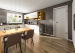 In der geräumigen Wohnküche ist genug Platz zum Essen für die ganze Familie. Der Eingangsbereich des Hauses mit Garderobe ist großzügig geplant.
