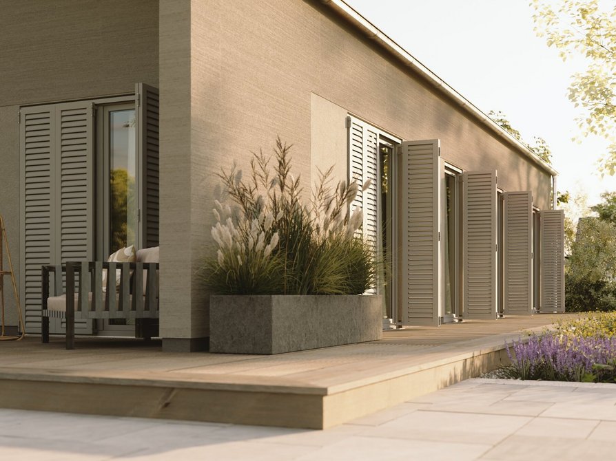 - Faltschiebeläden: Sie verpassen deinem Haus nicht nur einen neuen, ausgefallenen Touch, sondern können auch für die Verdunklung der Zimmer dienen. Es gibt sie in der Sicht- und Wetterschutz-Variante „SUN“, die sich dem Sonnenstand anpassen lässt, oder in der Variante „NATURE“ mit Naturholzstreben.
