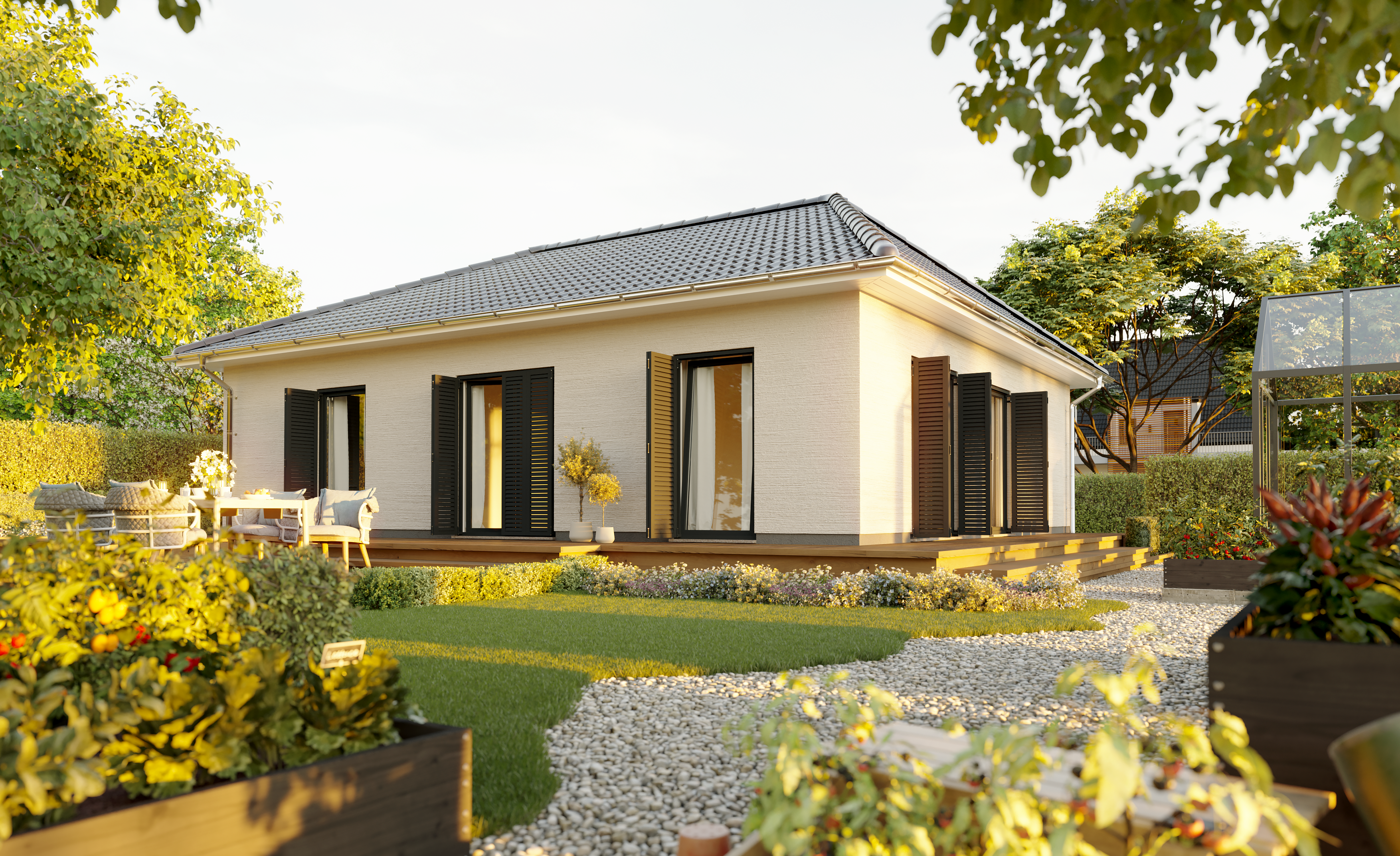 Ein Bungalow bietet Wohnen auf einer Ebene – ohne Treppen, Schwellen oder Stolperfallen. Das macht ihn:
